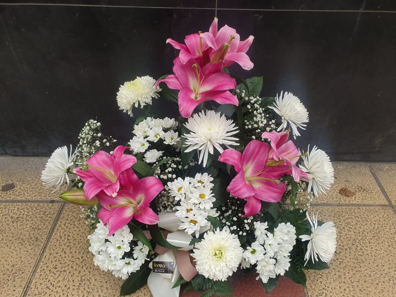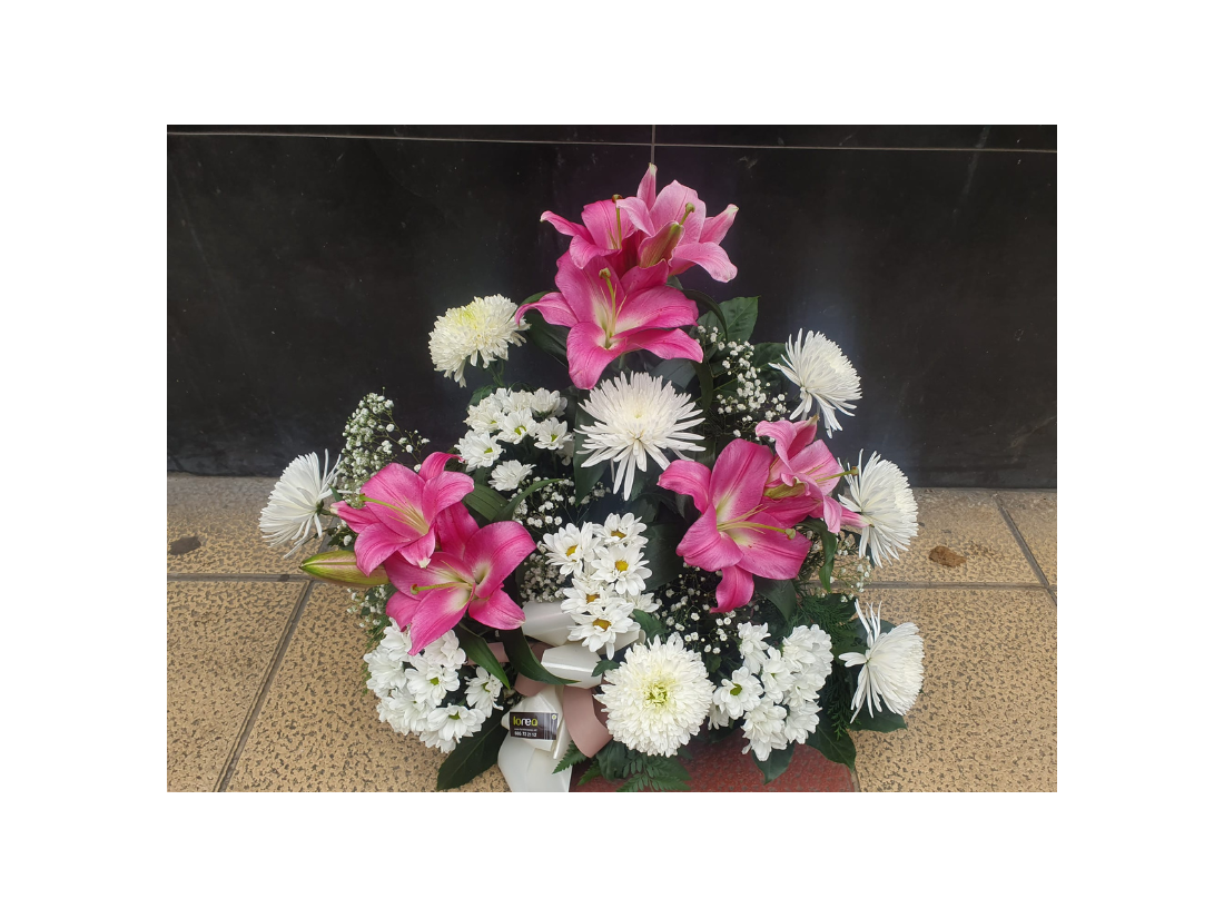 Compuesto por lilium oriental , lilium l.a , crisantemo anastasia , margarita crisantemo, paniculata, verdes variados.