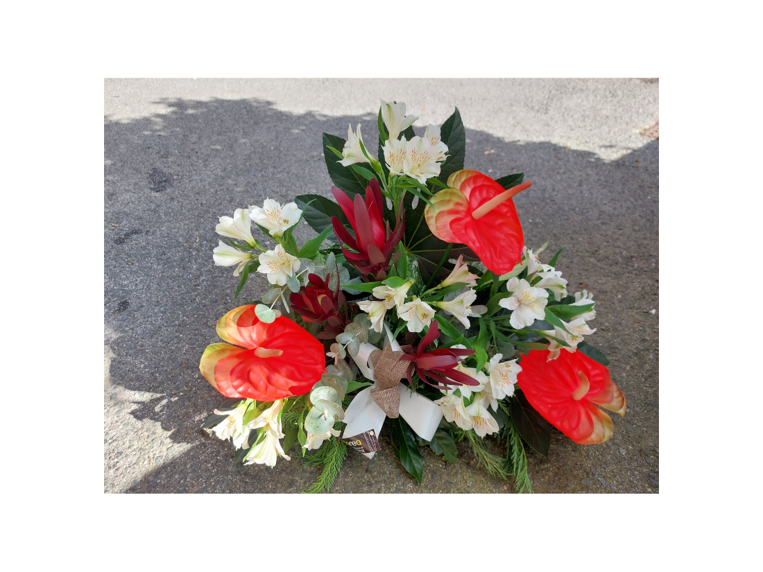 Realizado con anthurium , astromelia y leucadendro, además de verdes varios